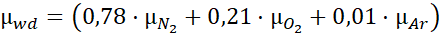 Sumujemy masy poszczególnych składników powietrza w jednym jego molu, obliczone jako iloczyny masy molowej danego składnika i jego procentowy udział w składzie powietrza. Dla wdychanego powietrza: