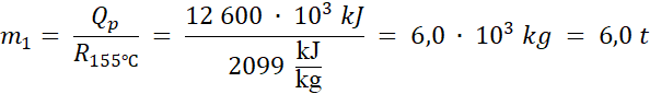 W tym zadaniu oblicz, jaka część masy wody m = 30 t o temperaturze wrzenia Tw = 155oC zamieniła się w parę wodną, jeśli dostarczono do niej Qp = 12,6 GJ oraz jaką masę pary otrzymamy, jeśli dostarczymy taką samą ilość ciepła do wody o temperaturze wrzenia T = 100oC. Ciepło parowania w temperaturze Tw = 155oC wynosi