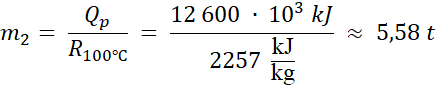 Masę wody zamieniającej się w parę wyznaczymy z zależności: