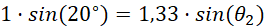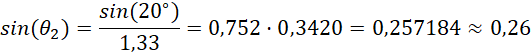 Wykorzystaj prawo Snelliusa (prawo załamania). Prawo to opisuje się wzorem:
