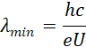 W lampie rentgenowskiej minimalną długość fali przedstaw tym wzorem: