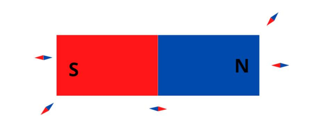 Igła magnetyczna będzie zwrócona swoim biegunem do odwrotnego bieguna na magnesie.