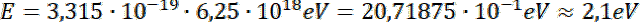 . W podpunkcie b) z tego samego wzoru wyliczyliśmy i podaliśmy w elektronowoltach energię kwantu promieniowania dla długości fali o wartości 600 nm.