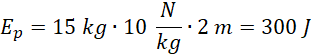 W tym zadaniu musisz obliczyć, jaka jest energia potencjalna worka ważącego 15 kg, który został podniesiony przez gospodarza na wysokość 2 metrów.