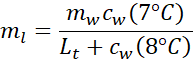 Na podstawie danych zgromadzonych w treści zadania oblicz masę kostki lodu wrzuconej do kalorymetru.