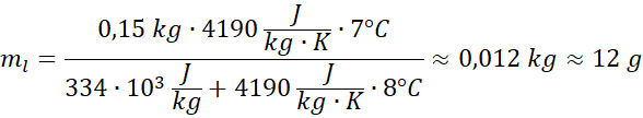 Suma ciepeł potrzebnych do stopienia kostki lodu i ogrzania jej do temperatury końcowej jest równa ciepłu oddanemu przez wodę.
