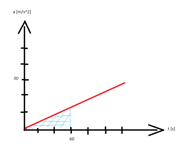 Prędkości rakiety po 60 sekundach możemy obliczyć jako pole pod wykresem zależności przyspieszenia od czasu.