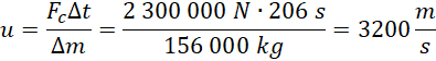 Oblicz prędkość względem rakiety, z jaką są wyrzucane gazy, będące produktami spalania, korzystając z podanego wzoru.