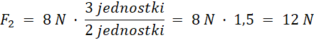 8 N · 3 jednostki = F2 · 2 jednostki