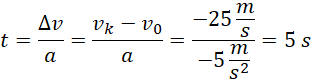 Odpowiedź: Czas hamowania wyniesie 5 sekund.