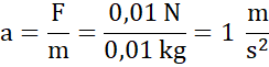 Siła o wartości 0,01 N nadała kostce na rysunku A przyspieszenie