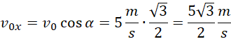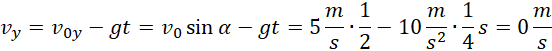 Wiedząc, że kulka była wystrzelona ukośnie pod kątem 30° do poziomu z szybkością 5 m/s oblicz wartość jej prędkości po 0,25 s od chwili jej wystrzelenia.