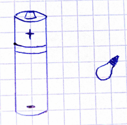 W tym zadaniu narysuj na schemacie przewody w taki sposób, aby żarówka zaczęła świecić, a następnie zaznacz strzałką w kolorze zielonym umowny kierunek płynięcia prądu, a czerwonym kolorem – kierunek przepływu elektronów.