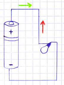 Umowny kierunek prądu – od bieguna dodatniego do ujemnego.