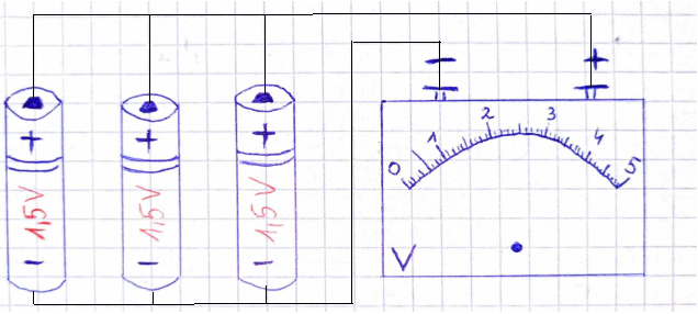 W tym zadaniu narysuj przewody, by uzyskać równoległe połączenie baterii, a następnie narysuj przewody, które łączą woltomierz z bateriami. Uwzględnij wskazówkę przyrządu.