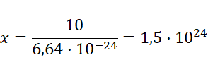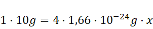 Jądro helu ma masę 4 u, zatem 10 g helu (z proporcji):