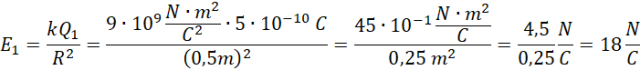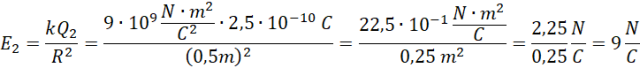 Wypadkowa natężenie E jest wypadkową natężenia od ładunku Q1 i ładunku Q2. Natężenie od każdego z ładunku oblicz ze wzoru