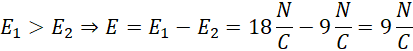 Porównaj obliczone natężenia. Końcowe natężenie jest różnicą większego natężenia i mniejszego, ponieważ ładunki znajdują się po przeciwnych stronach punktu, więc ich natężenia działają w przeciwnych kierunkach.
