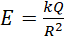 , gdzie Q – wartość ładunku, R – odległość punkt od ładunku.