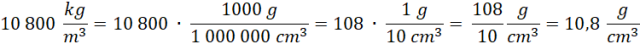 Aby zamienić gęstość substancji podaną w kilogramach na metr sześcienny na gramy na centymetr sześcienny, należy tę wielkość pomnożyć przez 1000 (ponieważ 1 kg to 1000 g) oraz podzielić przez 1 000 000 (ponieważ 1 m3 to 1 000 000 cm3). Rodzaj substancji o tej gęstości znajdziesz w tablicach gęstości substancji.