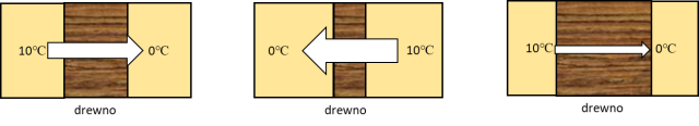 Przy takiej samej różnicy temperatur po obu stronach materiału, ciepło będzie szybciej przewodzone niż przez grubszą warstwę.