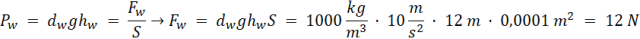 Oblicz siłę nacisku, z jaką działa woda w rurce na tłoczek: