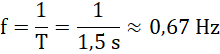 Częstotliwość drgań jest odwrotnością okresu, który wyznaczyliśmy w punkcie a).