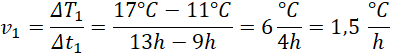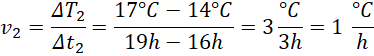 Przyrost/spadek temperatury należy podzielić przez okres, w jakim ona występowała. Poprawność rozwiązania można sprawdzić przez wykres narysowany w podpunkcie a. Im linia jest bliżej pionu (mocniej nachylona), tym temperatura szybciej rośnie lub spada.
