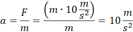 W próżni nie ma sił oporów powietrza – każde ciało poddane jest jedynie działaniom sił ciężkości. Z drugiej zasady dynamiki Newtona, gdzie F = ciężar danego ciała, widzimy;