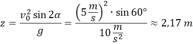 Wiedząc, że kulka była wystrzelona ukośnie pod kątem 30° do poziomu z szybkością 5 m/s oblicz zasięg ruchu tej kulki.