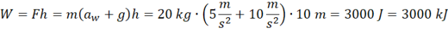 Oblicz, jaką pracę wykonamy przy podnoszeniu ciała o masie 20 kg na wysokość 10 m z przyspieszeniem o wartości .