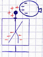 W tym zadaniu zaznacz na rysunku rozkład ładunków w metalowych częściach elektroskopu.