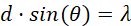 Ponieważ kąt dyfrakcji zwiększa się w miarę zwiększania długości fali, to oznacza, że prążek czerwony (odpowiadający dłuższej fali) jest bliżej prążka zerowego niż prążek fioletowy (odpowiadający krótszej fali).