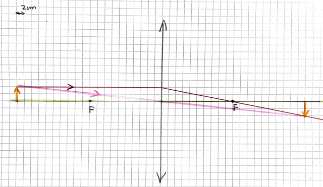 - odległość obrazu od soczewki wynosi 20 kratek. Biorąc pod uwagę skalę (1 kratka - 2 cm), to odległość ta wynosi więc 80cm