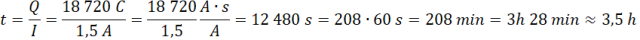 Z poprzedniego podpunktu wiesz ilu ładunkom równa się 5200 mAh. Wiedząc to i znając natężenie prądu, możesz wyliczyć czas pracy laptopa ze wzoru , gdzie Q – zgromadzony ładunek, t – czas pracy.