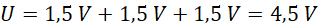 Napięcie każdej baterii wynosi 1,5 V. Baterie połączone są szeregowo, więc napięcie całej latarki to suma napięć każdej baterii.