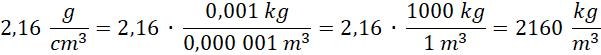 Aby zamienić gęstość substancji podaną w granach na centymetr sześcienny na kilogramy na metr sześcienny, należy tę wielkość pomnożyć przez 0,001 (ponieważ 1 g to 0,001 kg) oraz podzielić przez 0,000 001 (ponieważ 1 cm3 to 0,000 001 m3). Rodzaj substancji o tej gęstości znajdziesz w tablicach gęstości substancji.