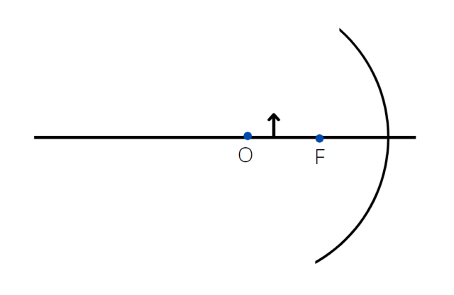 Strzałka ta będzie pomiędzy środkiem krzywizny a ogniskiem zwierciadła.