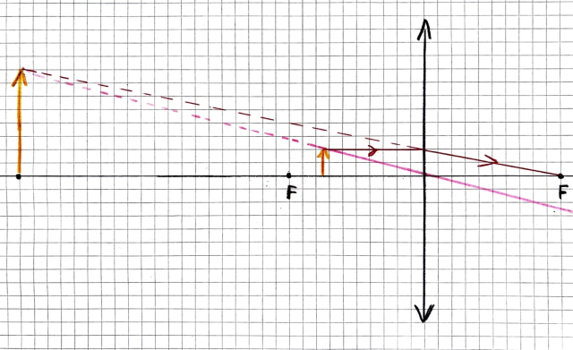 - odległość obrazu od soczewki wynosi ok 6,7 kratki. Biorąc pod uwagę skalę (1 kratka - 1 cm), to odległość ta wynosi więc około 6,5 cm