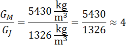 Korzystając z tablic na końcu książki, oblicz stosunek gęstości największej i najmniejszej planety Układu Słonecznego.