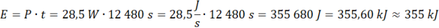 Pracę i czas pracy znasz z poprzednich podpunktów. Energię wyliczysz ze wzoru , gdzie P –praca, t – czas pracy.