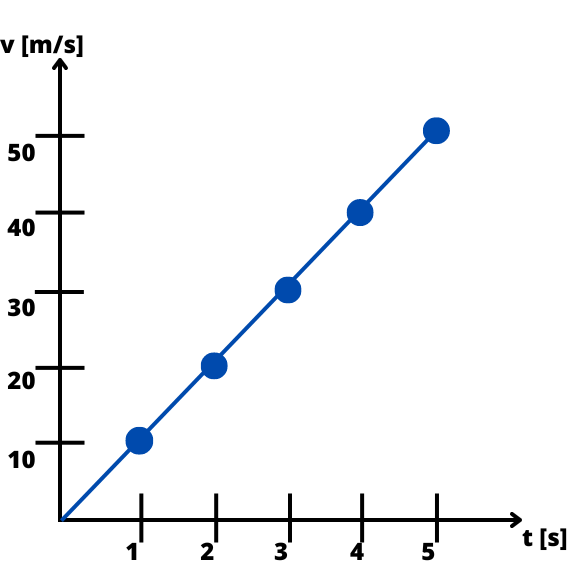 Aby narysować wykres zależności prędkości od czasu, musisz zacząć od narysowania dwóch osi prostopadłych – na osi poziomej zaznaczysz kolejne jednostki czasu, na osi pionowej zaznaczysz wartości prędkości jabłka osiągnięte w kolejnych jednostkach czasu. Następnie możesz zaznaczyć punkty kratowe dla odpowiednich wartości szybkości w kolejnych jednostkach czasu. Następnie powinieneś narysować prostą przechodzącą przez te punkty wychodzącą z początku układu współrzędnych.
