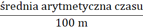 Prędkość w metrach na sekundę to iloraz średniej arytmetycznej czasu pokonania 100 metrów i odległości 100 metrów.