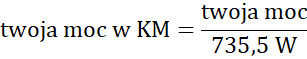 Aby obliczyć swoją moc w koniach mechanicznych, podziel wartość swojej mocy przez 735,5 W.