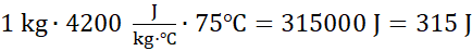 Temperatura początkowa wody jest równa temperaturze pokojowej i wynosi 25°C. Zatem, aby zagotować 1 kg wody, trzeba dostarczyć ciepła w ilości .