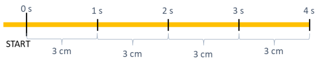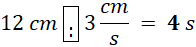 Ponieważ żuk poruszał się z prędkością , to znaczy, że pokonywał 3 cm w sekundę ruchu, dlatego 12 cm pokona w 4 s.