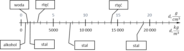 Odczytaj z tabeli na końcu podręcznika lub innych źródeł gęstości podanych substancji.