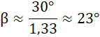 Oblicz w przybliżeniu kąt załamania światła w wodzie, jeśli promień pada na jej powierzchnię pod kątem 60° do tej powierzchni, a współczynnik załamania światła dla wody wynosi 1,33. Wykonaj rysunek pomocniczy.