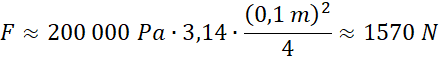 Oblicz siłę, jaką działa siłownik, jeśli jego średnica ma 10 cm, a ciecz robocza wywiera ciśnienie 200 kPa.