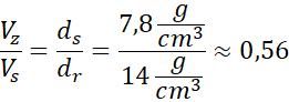 Na początku odczytujemy gęstość stali i rtęci z tablic znajdujących się z tyłu podręcznika. Następnie zapisujemy równość siły ciężkości śruby i siły wyporu, korzystając z I prawa Newtona. Kolejno przekształcamy wzór do otrzymania stosunku objętości zanurzonej w rtęci do całej objętości śruby.